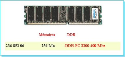 MEMOIRE DDR 256 Mo (16m*8) PC 3200