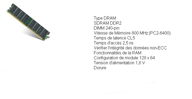 Mémoire Kingston DDR2 / 1 Go / PC800