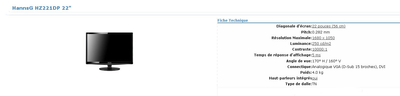> > > > Moniteur LCD Philips 221V2SB/00 - 21,5 pouces 16:9ème 5 ms