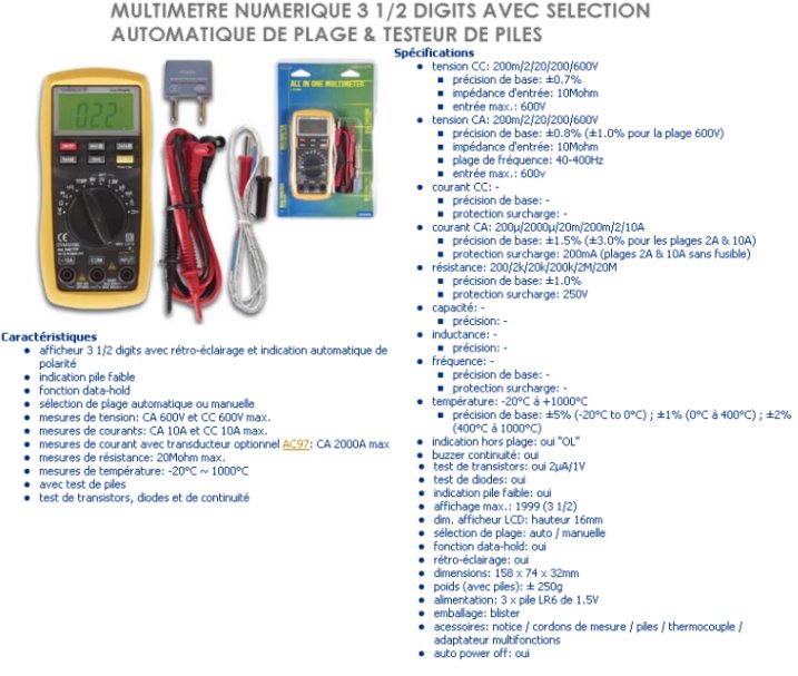 MULTIMETRE NUMERIQUE 3 1/2 AUTOMATIQUE ET TESTEUR DE PILES DVM860BL