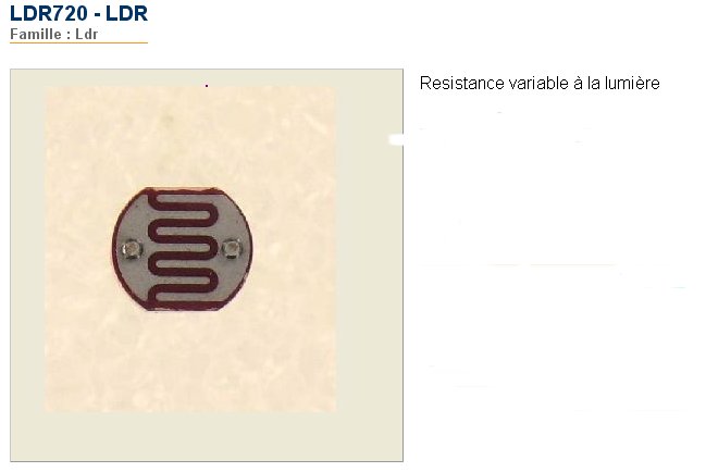 Photo-résistance de diamètre 10 mm - Résistance à la lumière : 100 ohms. - Résistance à l´obscurité : 50 Kohms