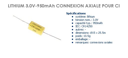 PILE 3V 950mAh 1/2R6 LITHIUM SORTIES FILS