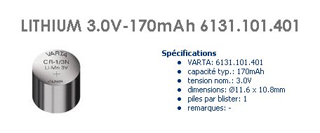 PILE 3V CR1/3N LITHIUM SANYO