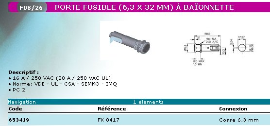> > > > Porte fusible à baionnette pour fusibles 6,35 x 32 mm