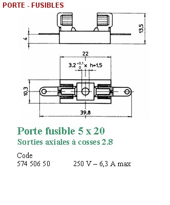 PORTE FUSIBLE A COSSES POUR FUSIBLE 5 x 20 mm