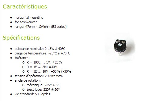 > > > > Potentiomètre ajustable horizontal 4,7 KOhms PR10H
