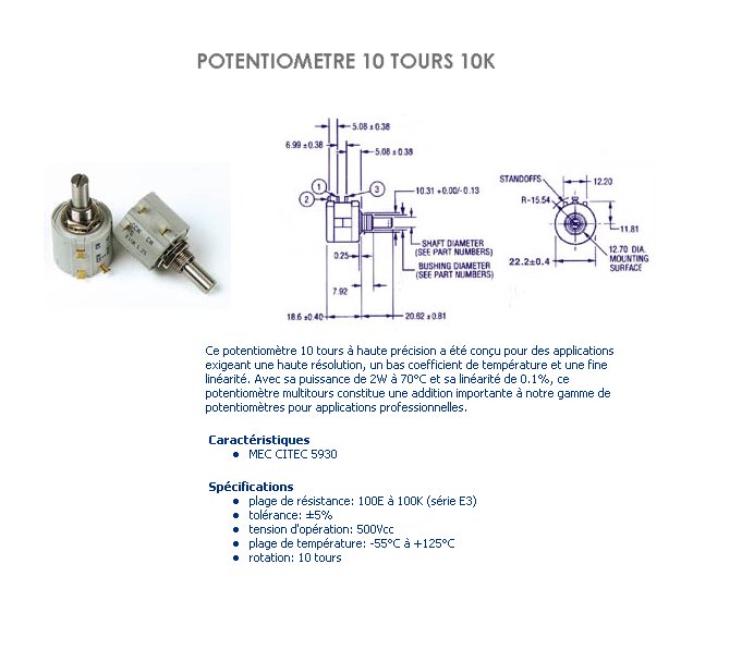 Potentiomètre Bourns 10 Tours 10 KOhms