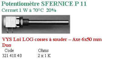 Potentiomètre logarithmique P11 VYS 2X1 KL 20%