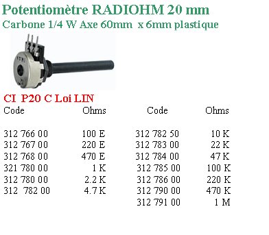 POTENTIOMETRE P20 100 ohms A axe 6mm