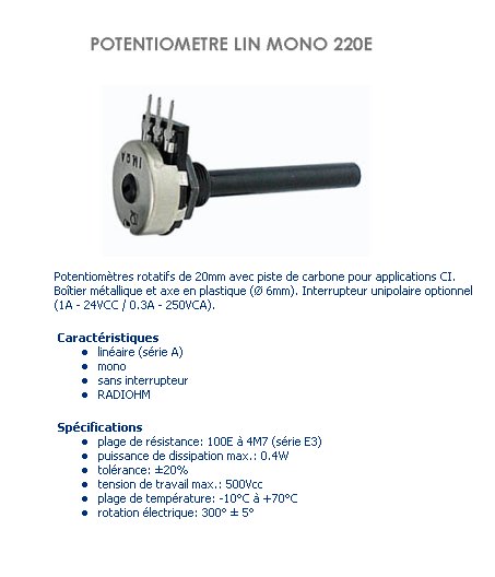 POTENTIOMETRE P20 220E A axe 6mm