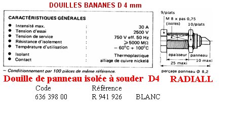 R941926001 Douille Banane de panneau isolee d.4mm Blanche