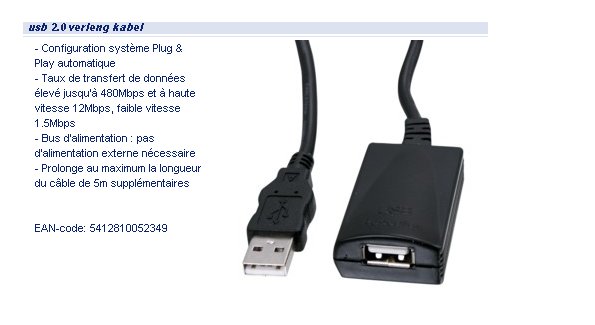 RALLONGE AMPLIFIEE USB2 A MALE / USB2 A FEMELLE 5M