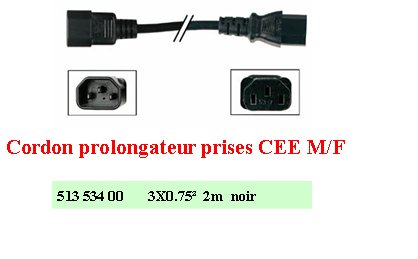 Rallonge prolongateur secteur mâle CEE droit / femelle. CEE droite 1.80 mètres