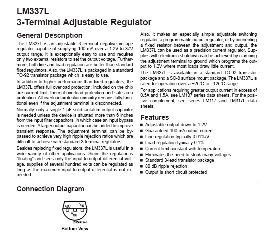 > > > > Régulateur de tension LM337LZ 1,2 Volts à 37 Volts 100 mAmpère TO92