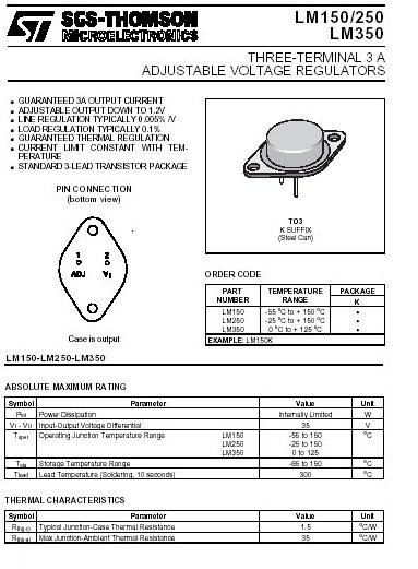 > > > > Régulateur de tension LM350K 1,2 Volts à 33 Volts 3 Ampères TO3