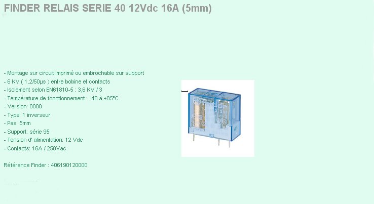 RELAIS 12V 16A 1RT FINDER SERIE RLF4061-9012
