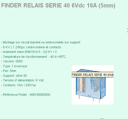 Relais FINDER RLF4061-9006 6 Volts 16 Ampères 1RT