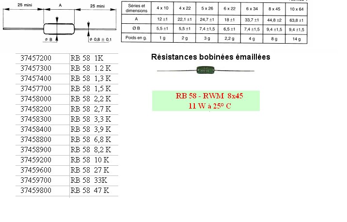> > > > Résistance bobinée vitrifiée RB58 - 2,2 KOhms 5% 16 Watts