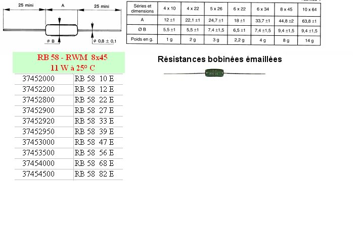 Résistance bobinée vitrifiée RB58 - 39 Ohms 5% 16 Watts
