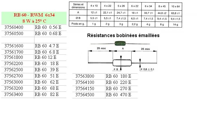 > > > > Résistance bobinée vitrifiée RB60 - 0,68 Ohm 5% 8 Watts