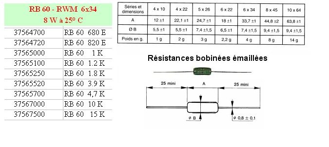 > > > > Résistance bobinée vitrifiée RB60 - 1,2 KOhms 5% 8 Watts