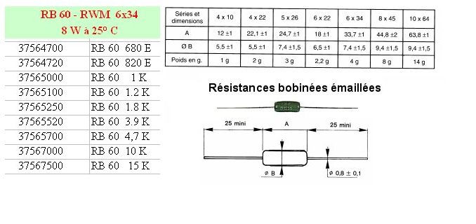 Résistance bobinée vitrifiée RB60 - 1 KOhms 5% 8 Watts