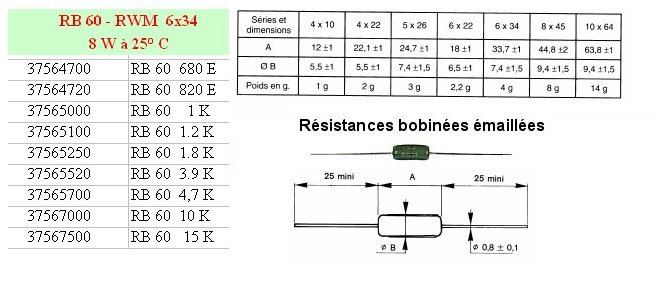Résistance bobinée vitrifiée RB60 - 10 KOhms 5% 8 Watts