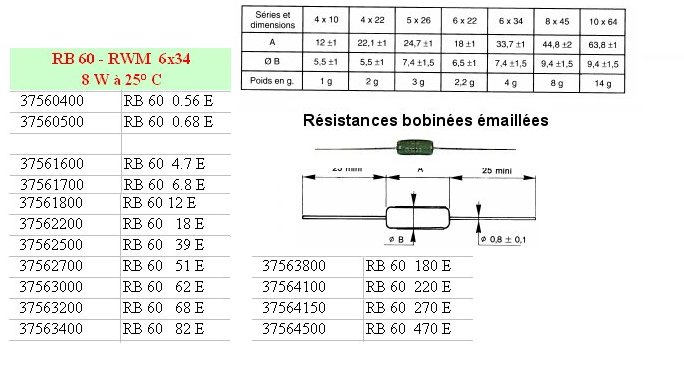 Résistance bobinée vitrifiée RB60 - 180 Ohms 5% 8 Watts