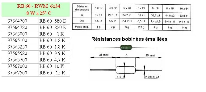 > > > > Résistance bobinée vitrifiée RB60 - 4,7 KOhms 5% 8 Watts