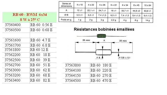 Résistance bobinée vitrifiée RB60 - 470 Ohms 5% 8 Watts