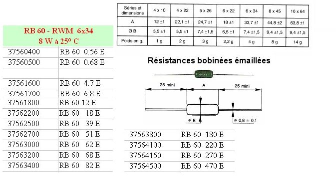 Résistance bobinée vitrifiée RB60 - 51 Ohms 5% 8 Watts