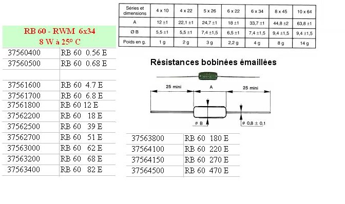 > > > > Résistance bobinée vitrifiée RB60 - 6,8 Ohms 5% 8 Watts
