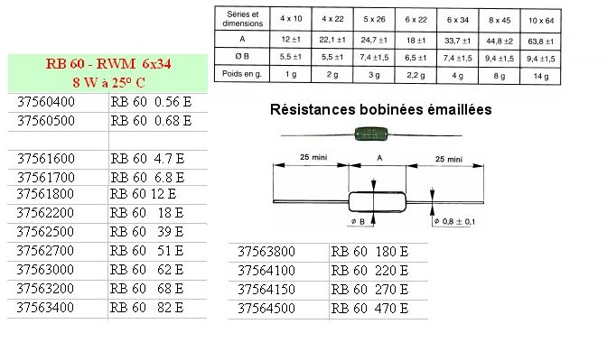 Résistance bobinée vitrifiée RB60 - 620Ohms 5% 8 Watts