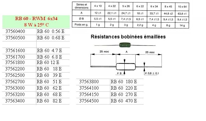 Résistance bobinée vitrifiée RB60 - 68 Ohms 5% 8 Watts