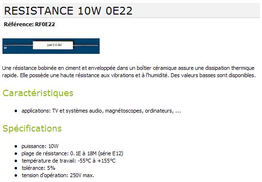 > > > > Résistance céramique 10 Watts 0,22 Ohms