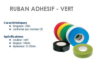 RUBAN ADHESIF VERT 18 mm x 20 metres