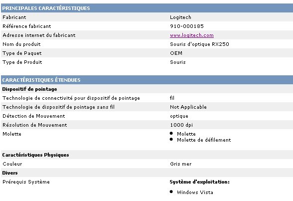 SOURIS LOGITECH OPTICAL MOUSE BLANCHE USB/PS2 RX250