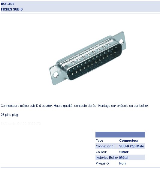 SUB-D 25 POINTS MALE FUT A SOUDER