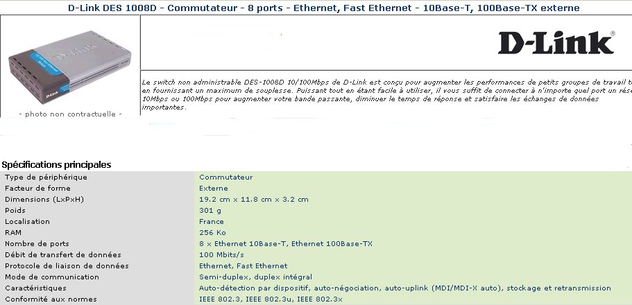 SWITCH RESEAU 8 PORTS 10/100 D-LINK DES1008D##