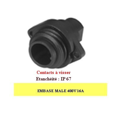 T3110000 EMBASE MALE POUR CONNECT. ROND ETANCHE 4 points 400V 16A