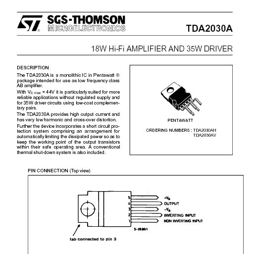 TDA2030AV AMPLI HIFI 18W PENTAWATT