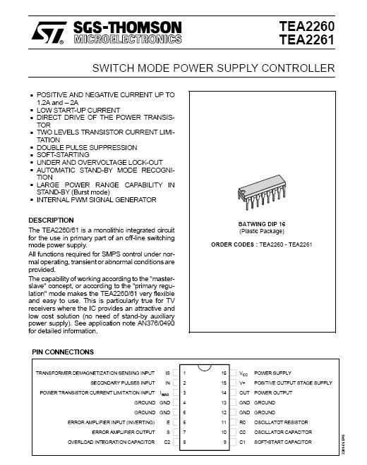 TEA2261 SWITCH MODE POWER SUPPLY CONTROLLER DIP16