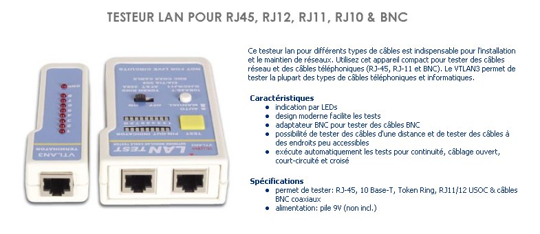 TESTEUR DE CABLE POUR RJ45 / RJ10 / RJ11 / RJ12 / BNC