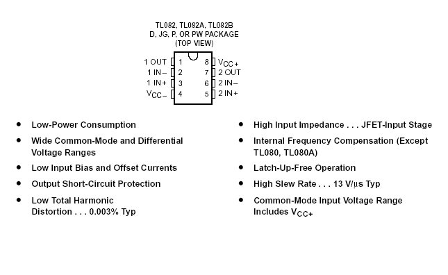 TL082CN Amplificateur opérationnel J-FET boitier DIP8