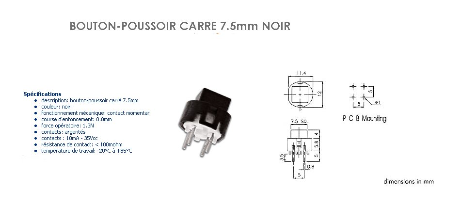 TOUCHE CI d6 CARREE 7.7 x 7.7mm NOIRE
