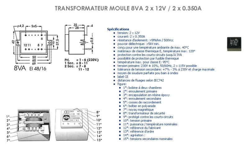 TRANSFORMATEUR 2 x 12V 8VA MOULE