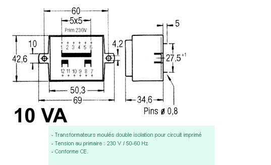 TRANSFORMATEUR 2 x 15V 10VA MOULE SM10B215