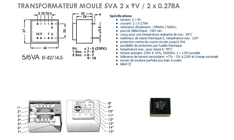 TRANSFORMATEUR 2 x 9V 5VA MOULE