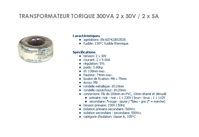 TRANSFORMATEUR TORIQUE 2 x 30V 300VA