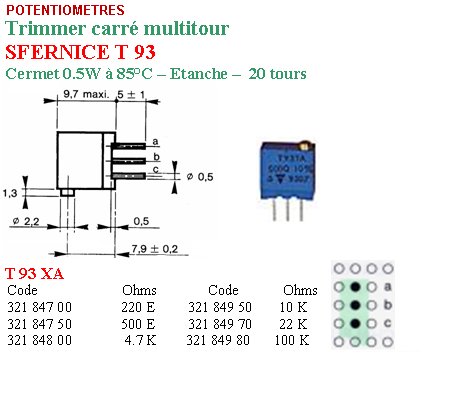 Trimmer étanche T93XA 100 KOhms CERMET 20% 0.5 Watt 22 Tours